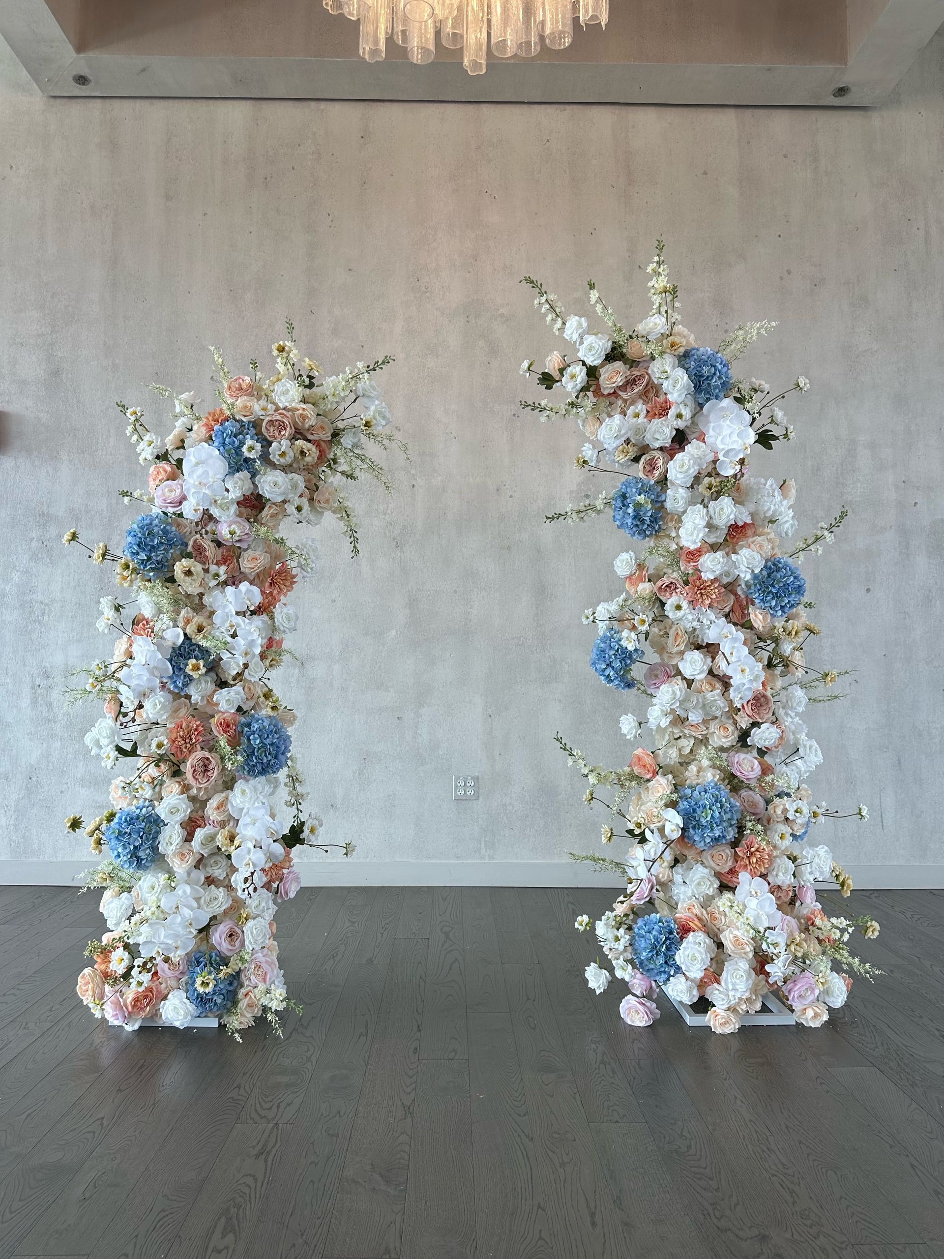 ButtonDusty Blue Artificial Silk Flower Arrangement Pillars Wedding Arch Backdrop Rental